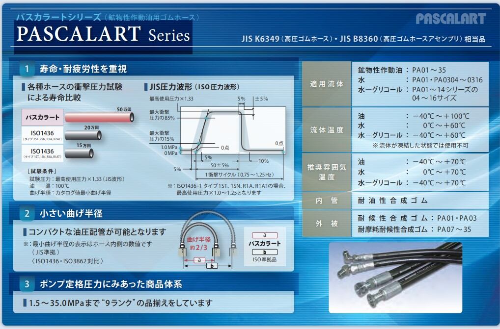 油圧ホース サイズ3/4、耐圧21.0MPa 長さ301~600mm